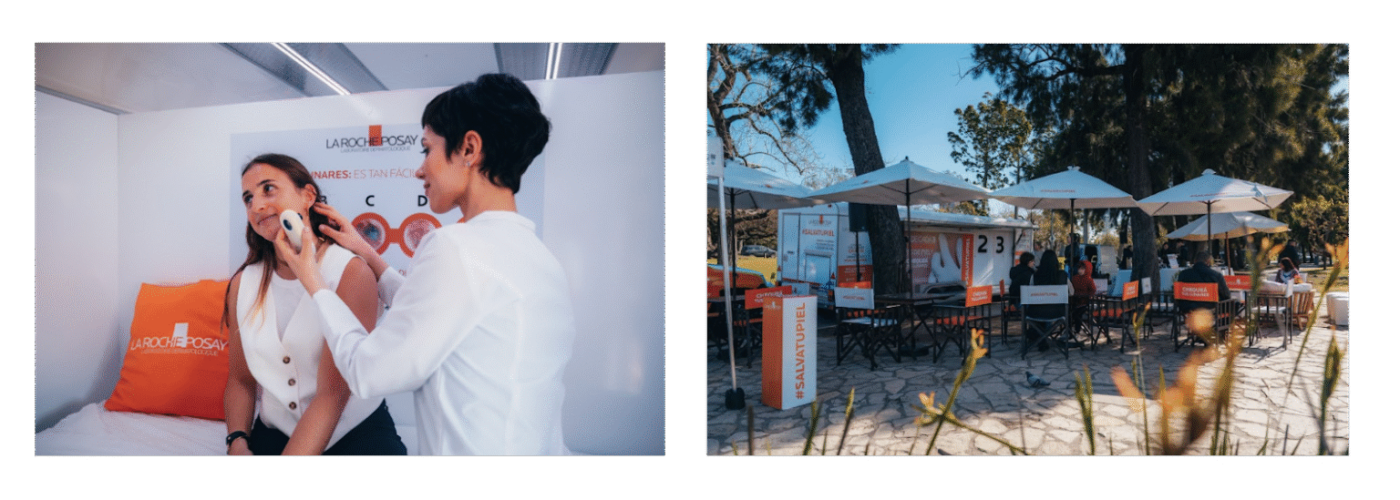 Chequeo presencial y gratuito de lunares con dermatólogos/as a través de un camión con 3 consultorios móviles que recorre Argentina, 36 sedes de LALCEC (Liga Argentina de Lucha contra el Cáncer) y en las principales cadenas de farmacias del país.