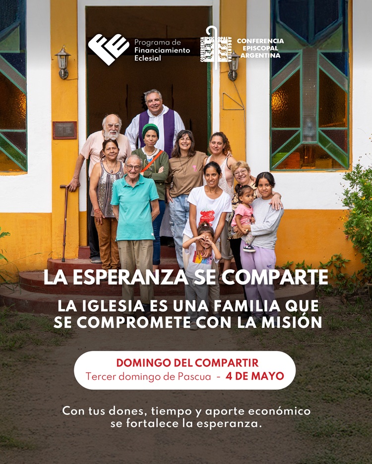 La Iglesia celebra esta jornada para concientizar sobre la necesidad del sostenimiento de su misión. De manera particular, en este tiempo pascual, atravesado por la oración y la gratitud por la vida del papa Francisco, la Iglesia Argentina se reúne una vez más para celebrar el Domingo del Compartir. En el espíritu de Francisco, que nos enseñó a vivir el Evangelio desde lo simple y lo concreto, caminamos hacia este domingo, que es una oportunidad para poner la esperanza en el centro.
