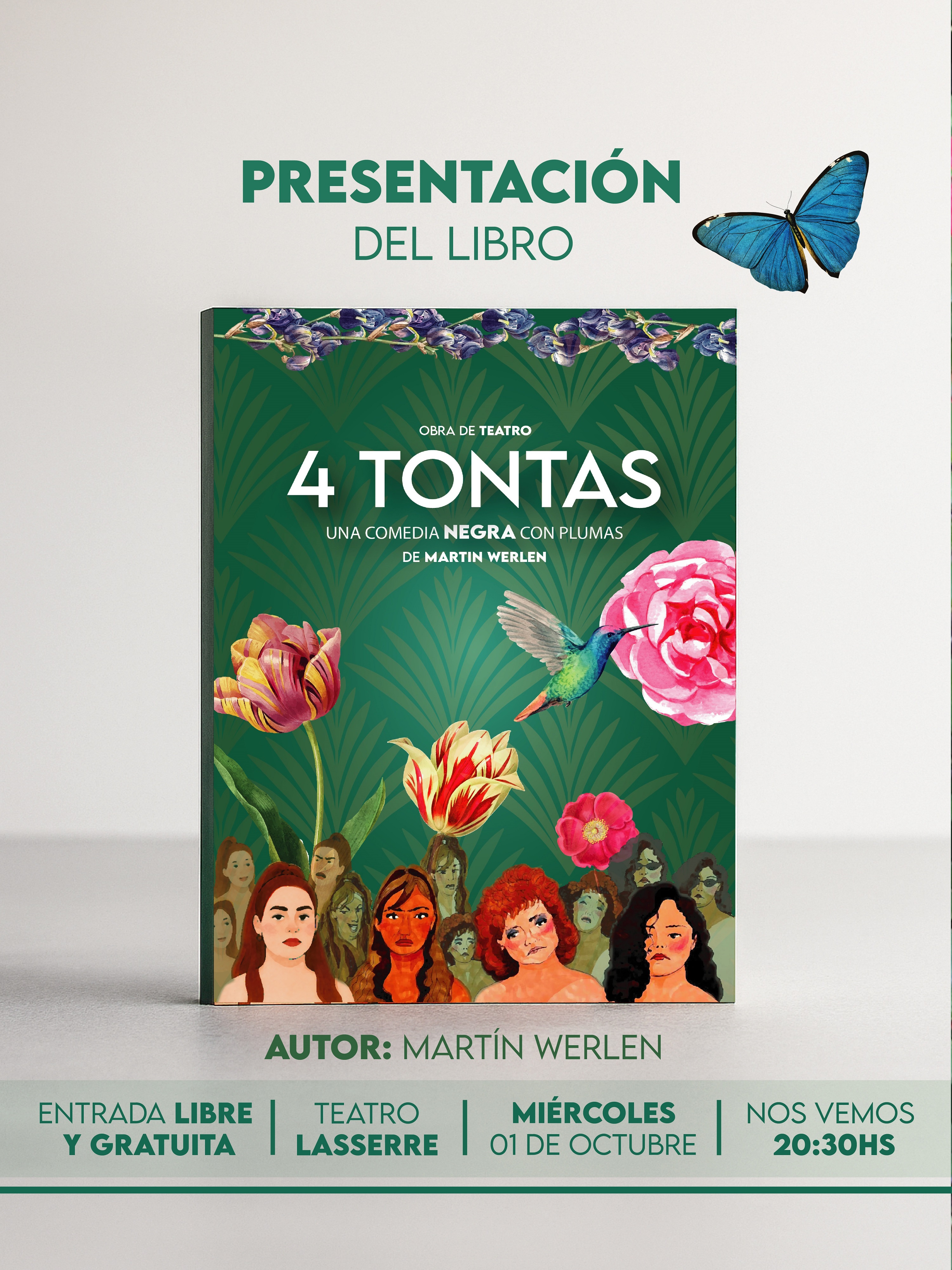 El próximo miércoles 1 de octubre a las 20:30 hs, sobre el escenario del Centro Ciudad de Rafaela – Teatro Lasserre, se presentará el libro de la obra de teatro “4 TONTAS, una comedia negra con plumas”, escrita y dirigida por el rafaelino Martín Werlen.