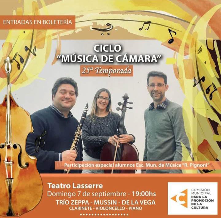 En el teatro B. Juan Lasserre se anuncia un concierto de cámara con la presencia del trío Zeppa, Mussin, De la Vega, agrupación que actuará el domingo 7 a partir de las 19 en el marco del Ciclo Música de Cámara.