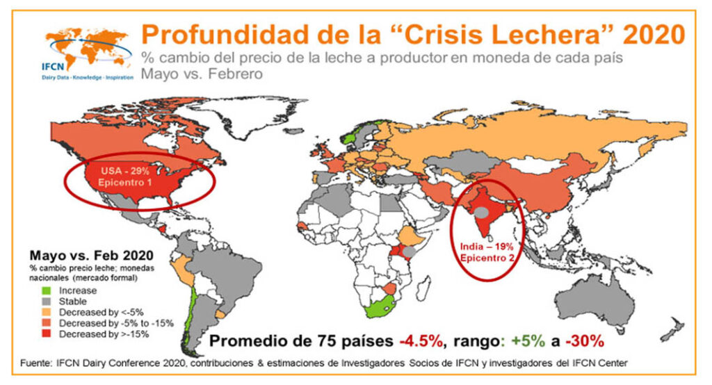 En el desarrollo de la 21ª Conferencia Lechera IFCN realizada del 2 al 3 de junio, expertos en lechería de 70 países discutieron sobre la crisis láctea relacionada con el coronavirus. La convocatoria centró en la situación del mundo lechero, y en los caminos de ingreso y salida de la crisis.