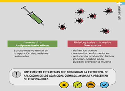 Las herramientas para el control surgen de la aplicación de "acaricidas químicos sintéticos, que incluye, además de las lactonas macrocíclicas, a los piretroides y fosforados, las formamidinas, los fenilpirazoles y los inhibidores de la síntesis de quitina como el fluazurón", señaló.