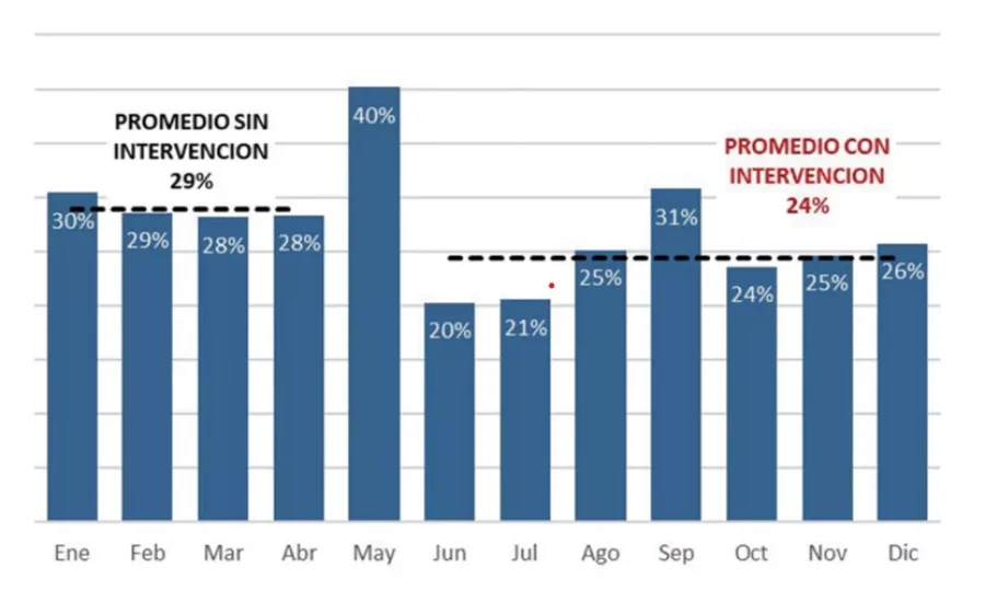 “En efecto, si nos remitimos a las cifras reales (excluyendo el mes de mayo donde se produjo un adelantamiento inusual de embarques previo a la intervención) el porcentaje exportado que en los primeros meses rozaba promedios del 30%, rápidamente fue corregido mediante este esquema de cupos, al 24% objetivo”, resaltaron.