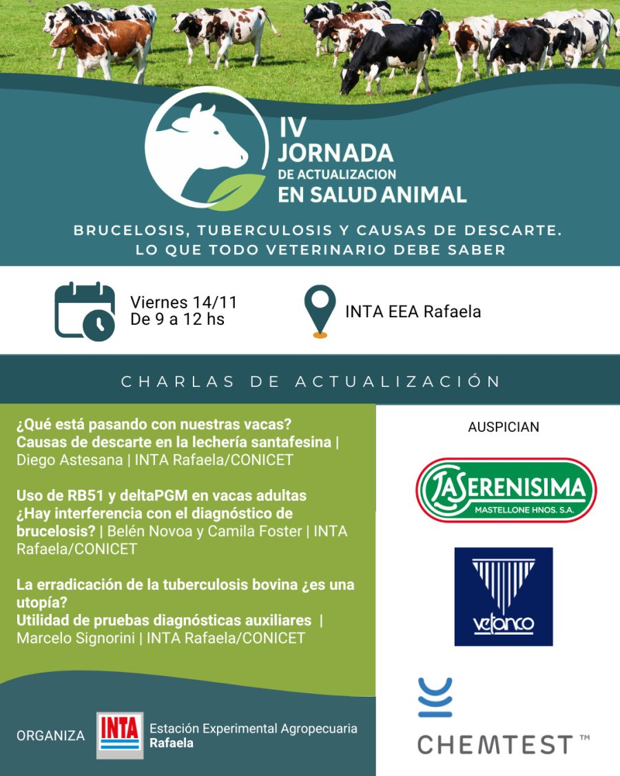 La jornada es organizada por el INTA Rafaela y cuenta con el auspicio de La Serenísima (Mastellone Hnos. S.A.), Vetanco y Chemtest.