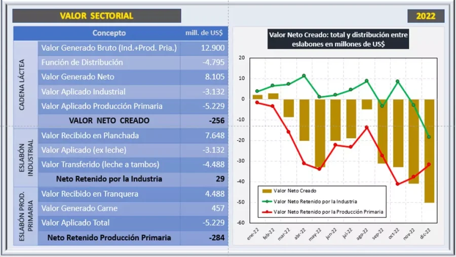 Con datos consolidados de diciembre de 2022, los eslabones productivos (industria y tambo), cerraron un año con un fuerte déficit en el resultado final.
