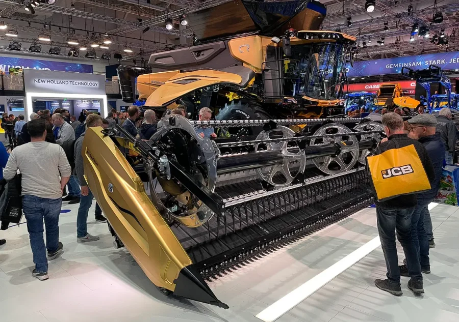 Con su cosechadora CR11, New Holland lleva el rendimiento a un nivel superior. Algunas cifras de la cosechadora New Holland CR 11: motor de 775 CV, tolva de 20.000 l, dos rotores de 24 pulgadas, barra de corte de 15 m, neumáticos de 2,32 m de diámetro.
