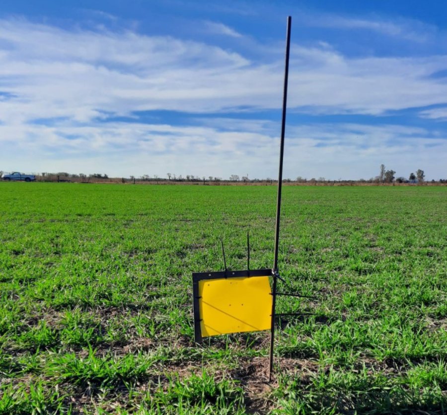 Con el objetivo de monitorear de cerca la actividad de la "chicharrita" en los campos de nuestra zona de influencia, la Cooperativa Guillermo Lehmann ha desplegado una serie “trampas pegajosas” en diferentes lotes, que consisten generalmente en láminas de color amarillo recubiertas con un adhesivo que captura a los insectos al contacto.