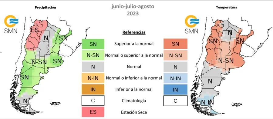 - Normal o superior a la normal: en Córdoba, oeste de Santa Fe, oeste de Buenos Aires y La Pampa.