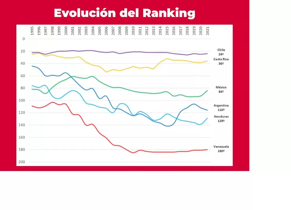 Krause además indica que mirando hacia atrás “la caída es más significativa teniendo en cuenta que desde 1996 a la fecha, el país retrocedió 72 posiciones y 10 desde el 2019. En el continente americano la situación no deja de preocupar ubicándose en el puesto 25 de 32, integrando ‘el final de la tabla’”.