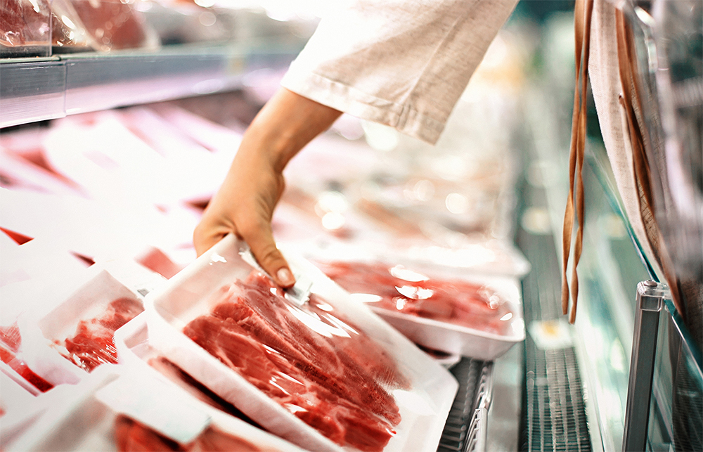 Aumentos de la carne en el mostrador