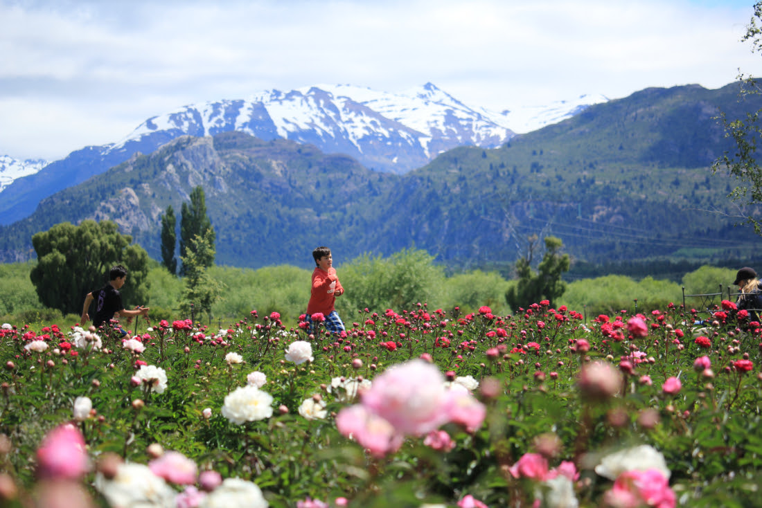 Los visitantes de Esquel pueden explorar el Circuito Peonías, que incluye los campos de peonías Alertie y Taiyō Jardín Cordillerano, donde se encuentran decenas de miles de plantas.